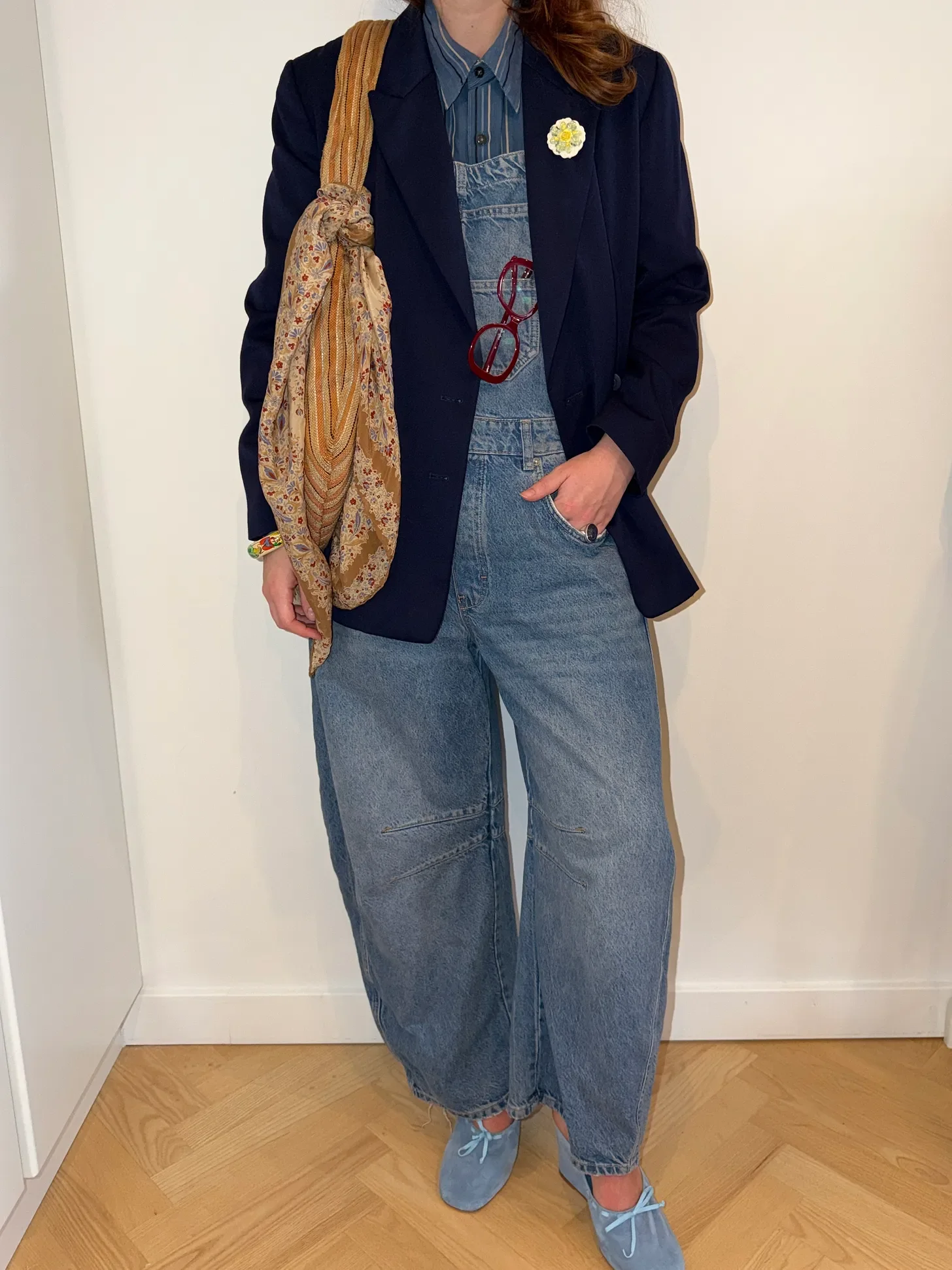 Up next was blue, but the outfit felt too blue and too fall so in a little act of rebellion I stuck my lapel with a springy yellow and green pin from Ireland-