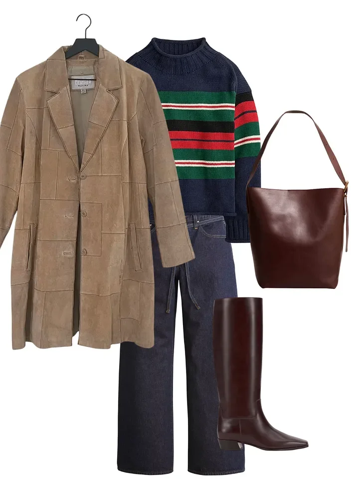 This $25.00 XL vintage coat, for example, serves the exact same color-matching function as an all-black trench coat. But when paired with a graphic tee and jeans combo, it takes the outfit to a totally different and much more personal place.
