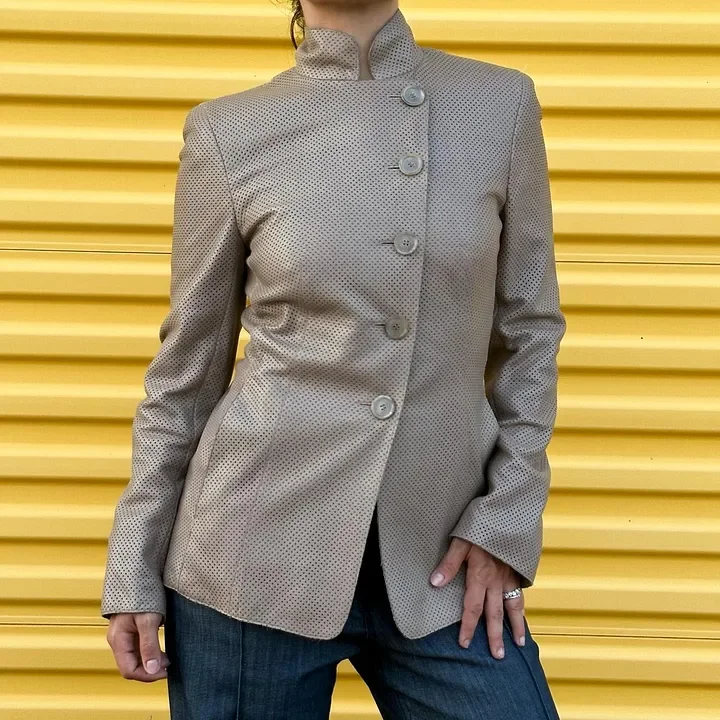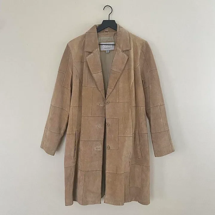 Through the power of texture, this $39.00 patchwork tan leather coat is able to completely revolutionize it’s familiar silhouette into something entirely different-