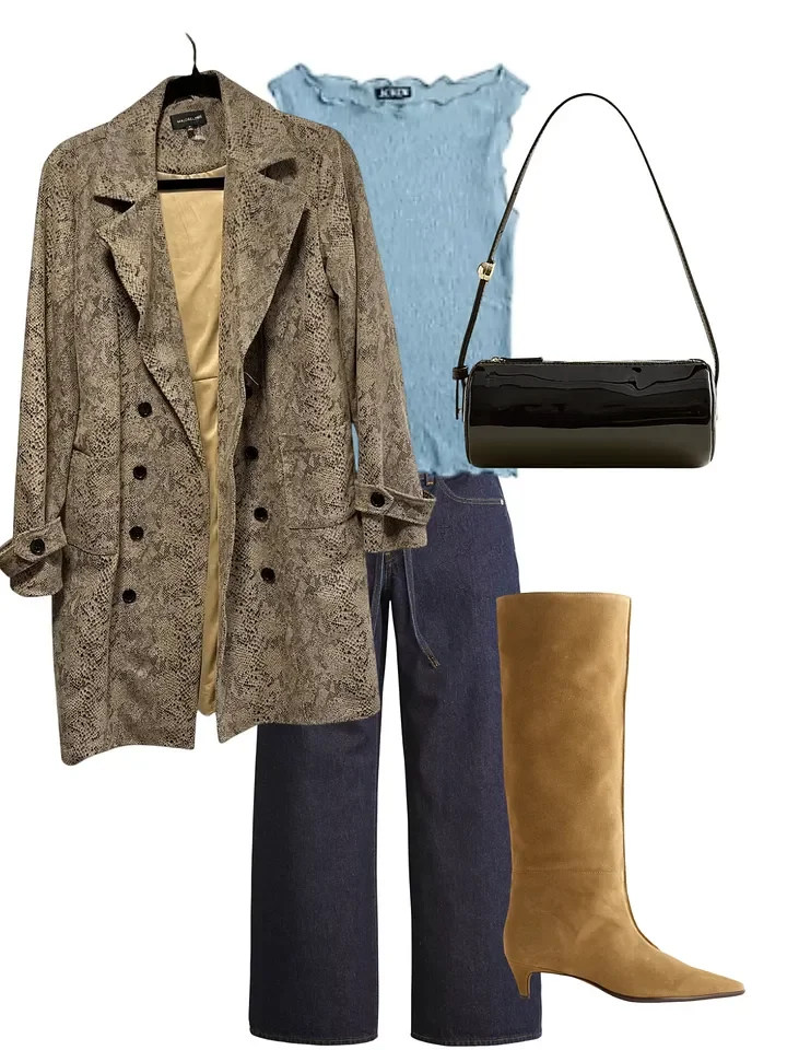 In my experience, no matter how loud the pattern, if it’s in a neutral color, it’s still a neutral piece, thus creating the secret weapon. I first discovered the power of neutral-patterned outerwear two years ago. It was late, and I was scrolling eBay for something tantalizing, though I didn’t know what. I came across this tiger-printed gray and black 1980s raincoat with a velvet lining. Though I wanted it desperately, I knew I had to wait my mandatory 12 hours before clicking “purchase” to test if I actually really loved it.